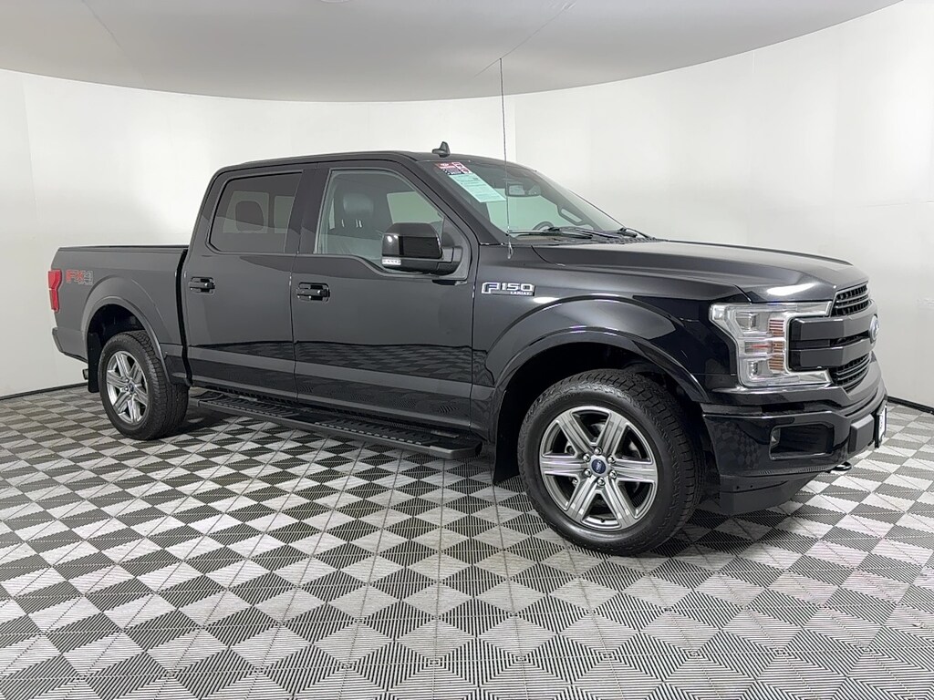 EPA 24 MPG Hwy/19 MPG City! LARIAT trim, Agate Black exterior and Black interior. Heated/Cooled Leather Seats, Moonroof, Chrome Wheels, Onboard Communications System, iPod/MP3 Input, Back-Up Camera, 4x4, ELECTRONIC LOCKING W/3.55 AXLE RATIO, LARIAT SPORT APPEARANCE PACKAGE, TAILGATE STEP W/TAILGATE LIFT ASSIST, EQUIPMENT GROUP 502A LUXURY, TRANSMISSION: ELECTRONIC 10-SPEED AUT... TWIN PANEL MOONROOF, Hitch. READ MORE! KEY FEATURES INCLUDE Leather Seats, 4x4, Heated Driver Seat, Cooled Driver Seat, Back-Up Camera, iPod/MP3 Input, Onboard Communications System, Trailer Hitch, Dual Zone A/C, WiFi Hotspot, Smart Device Integration, Apple CarPlay®, Heated Seats, Heated Leather Seats, Heated/Cooled Seats MP3 Player, Privacy Glass, Keyless Entry, Steering Wheel Controls, Child Safety Locks. OPTION PACKAGES EQUIPMENT GROUP 502A LUXURY Rain-Sensing Wipers, Power Tilt/Telescoping Steering Column w/Memory, Windshield Wiper De-Icer, Remote Start System w/Remote Tailgate Release, Lariat Chrome Appearance Package, 2 chrome front tow hooks, Single-Tip Chrome Exhaust, Chrome Angular Step Bars, Chrome Door & Tailgate Handles w/Body-Color Bezel, Wheels: 18 Chrome-Like PVD, Chrome 2-Bar Grille w/4 Minor Bars, painted silver surround and background mesh, Chrome Skull Caps on Exterior Mirrors, LED Sideview Mirror Spotlights, high-intensity LED security approach lamps, Radio: B&O Sound System by Bang & Olufsen, HD Radio, SiriusXM radio, 10 speakers and subwoofer, Note: When ordered w/voice-activated navigation system (50N) SiriusXM Traffic and Travel Link includes a, SiriusXM, TWIN PANEL MOONROOF, ELECTRONIC LOCKING W/3.55 AXLE RATIO, TAILGATE STEP W/TAILGATE LIFT ASSIST, LARIAT SPORT APPEARANCE PACKAGE unique interior finish, Box Side Decals, Single-Tip Chrome Exhaust, Wheels: 18 6-Spoke Machined-Aluminum, magnetic painted pockets, Accent-Color Angular Step Bars, 2-Bar Body-Color Grille w/4 Minor Bars, black surround and black mesh, Body-Color Front & Rear Bumpers, TRANSMISSION: ELECTRONIC 10-SPEED AUTOMATIC selectable drive modes: normal/tow-haul/snow-wet/EcoSelect/sport (STD). Ford LARIAT with Agate Black exterior and Black interior features a V6 Cylinder Engine with 325 HP at 5000 RPM*. EXPERTS ARE SAYING Edmunds.com explains This truck steers and handles about as well as anything in the class. It has confidence-inspiring brakes, too. They feel reassuring even when towing a trailer.. Great Gas Mileage: 24 MPG Hwy. A GREAT TIME TO BUY Was $34,995. This F-150 is priced $300 below Kelley Blue Book. Approx. Original Base Sticker Price: $48,000*. .